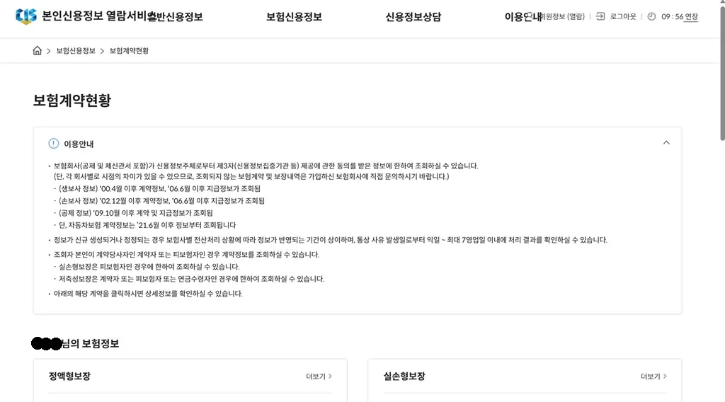 부모님이 들어준 보험까지 함께 확인할 수 있어요.