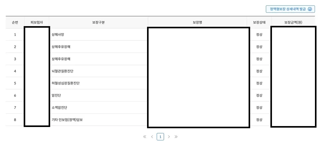 보장명과 보장금액이 표로 정리돼 나옵니다.