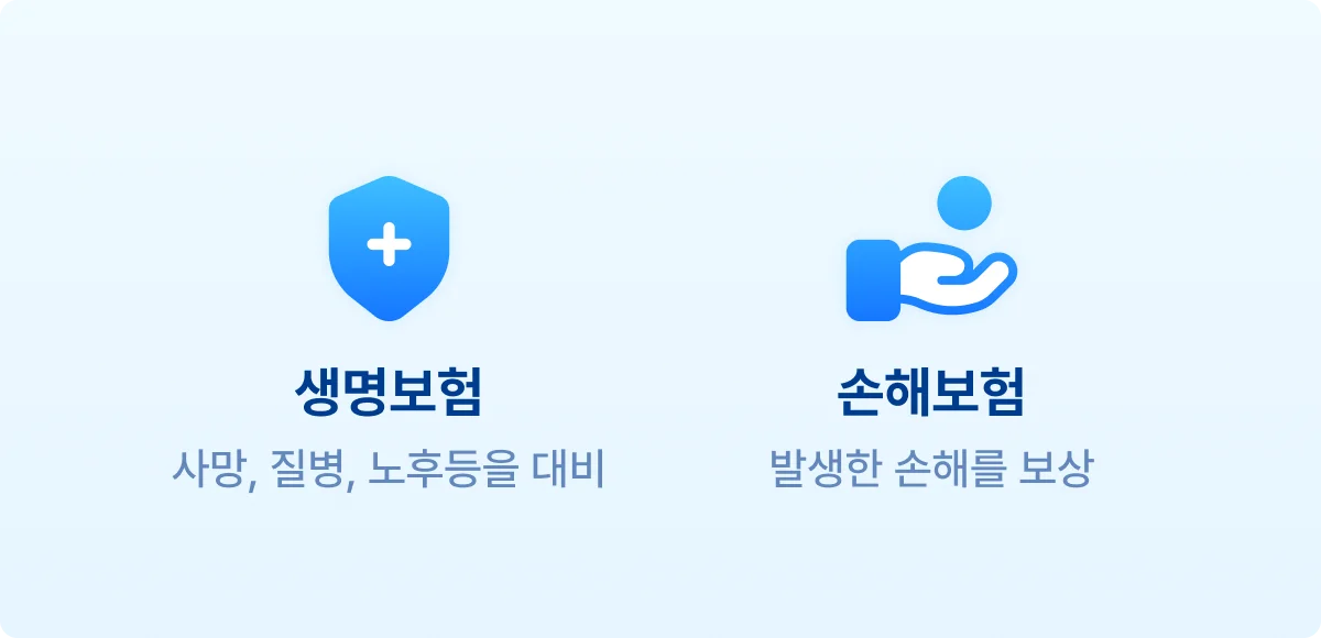 주된 목적 | 사망, 질병, 노후 대비 | 사고·재난·질병 등 손해 보상 |